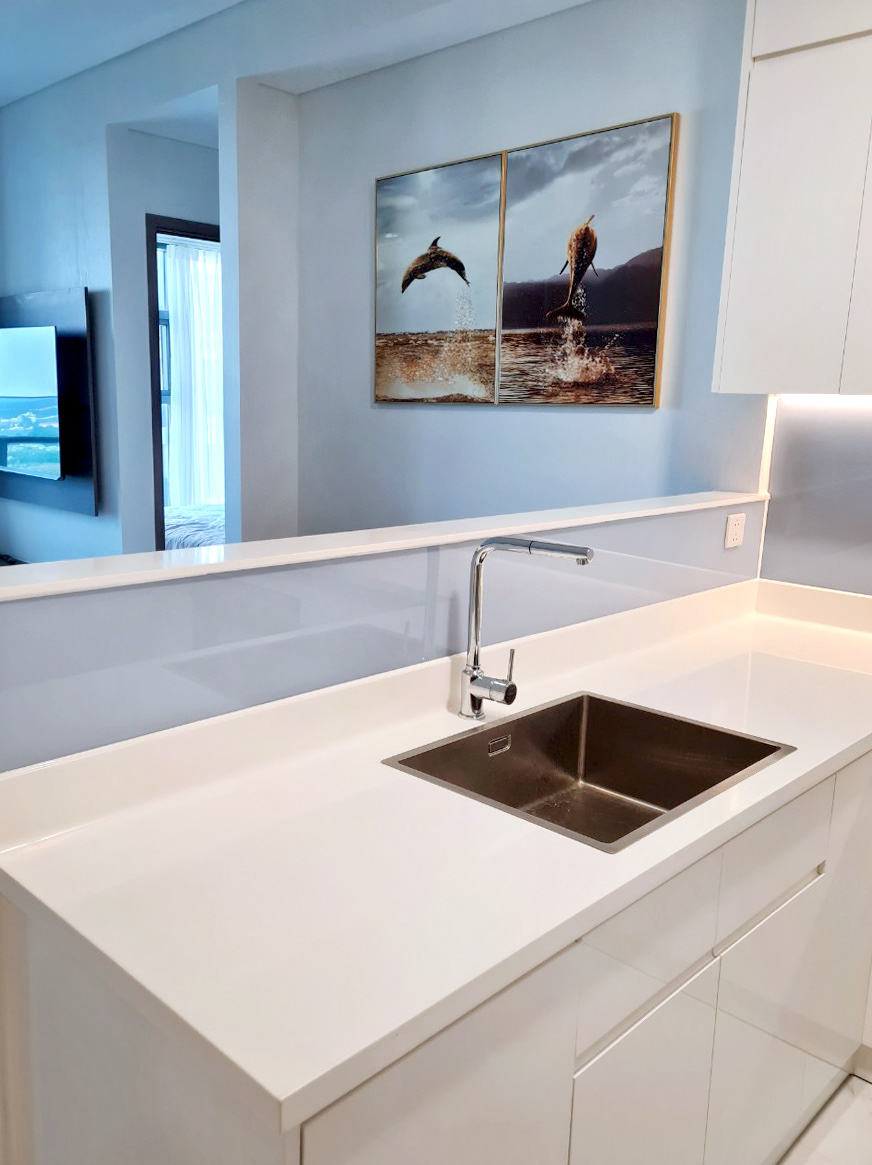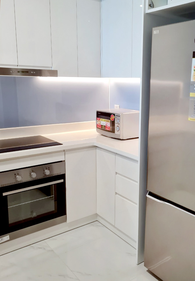 92 Nguyen Huu Canh, f22. Binh thanh district. Right at Thu Thiem Bridge, with convenience stores, restaurants, cafes and luxury grocery. Close to international schools, international hospitals and bank.